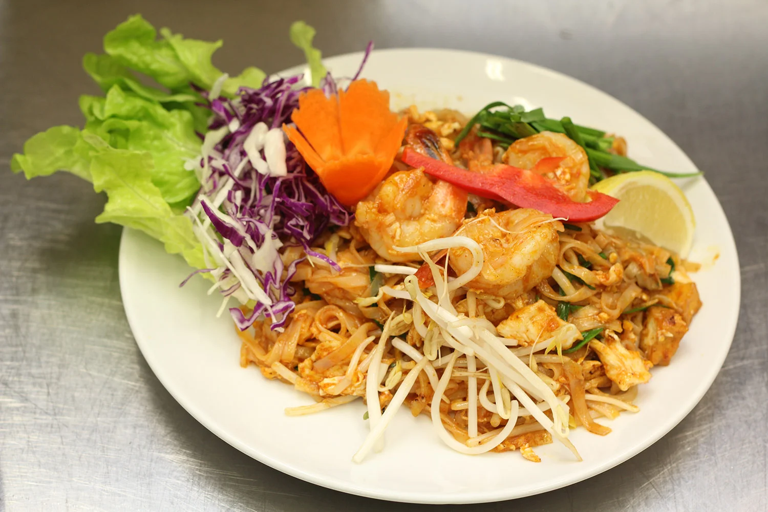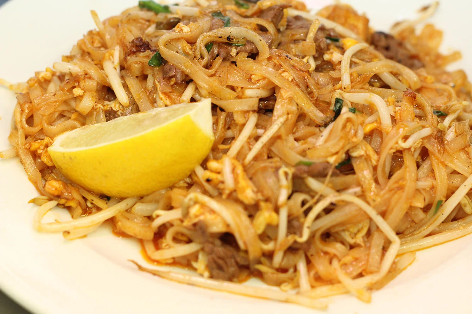 Soft rice noodles stir-fried with eggs, chicken and prawns. Chicken, Beef - $20.50 / Combination (Chicken, Beef, Pork, Prawns) - $22.50 / Prawns (8) - $23.50